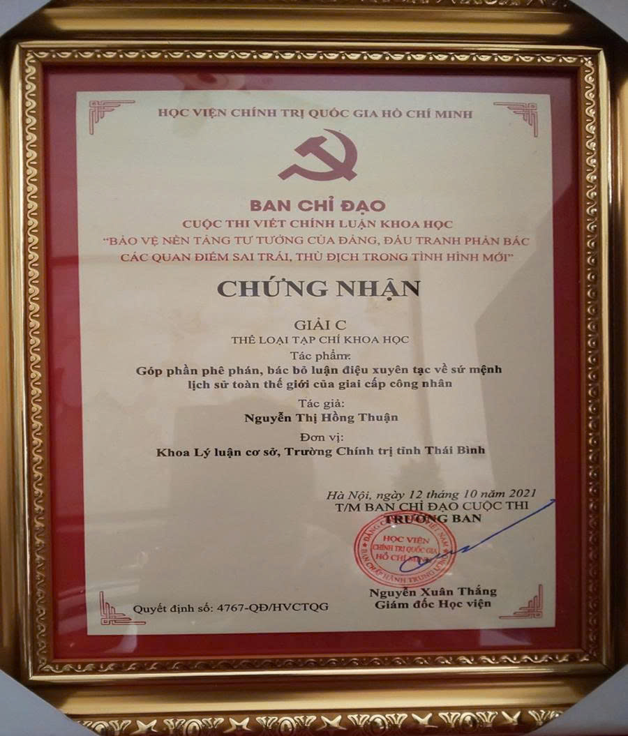 Với sứ mệnh cao cả là “cái nôi” đào tạo, bồi dưỡng cán bộ cho Đảng, đội ngũ giảng viên các trường chính trị nói chung, Trường Chính trị Nguyễn Văn Linh, tỉnh Hưng Yên nói riêng 5 năm qua đều tham gia tích cực các cuộc thi từ 2021 đến 2025. Đã có nhiều mô hình hay, cách làm sáng tạo như: tổ chức các cuộc thi ở cấp trường, cấp tỉnh/thành phố để chọn ra những tác phẩm xuất sắc trao giải hoặc gửi lên dự thi ở Trung ương; tổ chức trao đổi, tọa đàm, hội thảo khoa học cấp trường, cấp tỉnh; nghiên cứu đề tài khoa học các cấp; viết bài đăng trang web Nhà trường, báo, tạp chí; xuất bản kỷ yếu hội thảo, sách chuyên khảo… về các nội dung liên quan đến công tác này. Một số giảng viên Nhà trường cũng đã giành được những giải thưởng nhất định từ các cuộc thi ở cấp trường, cấp tỉnh, cấp Trung ương thời gian qua (xem hình ảnh minh họa). Đối với Cuộc thi chính luận về bảo vệ nền tảng tư tưởng của Đảng lần thứ 6 năm 2026, Nhà trường cũng đã tổ chức cho đội ngũ cán bộ, giảng viên tham dự trực tuyến buổi họp báo hưởng ứng lễ phát động Cuộc thi. Để việc tham gia Cuộc thi lần này có kết quả tốt hơn, chúng tôi xin chia sẻ một số kinh nghiệm sau đây: