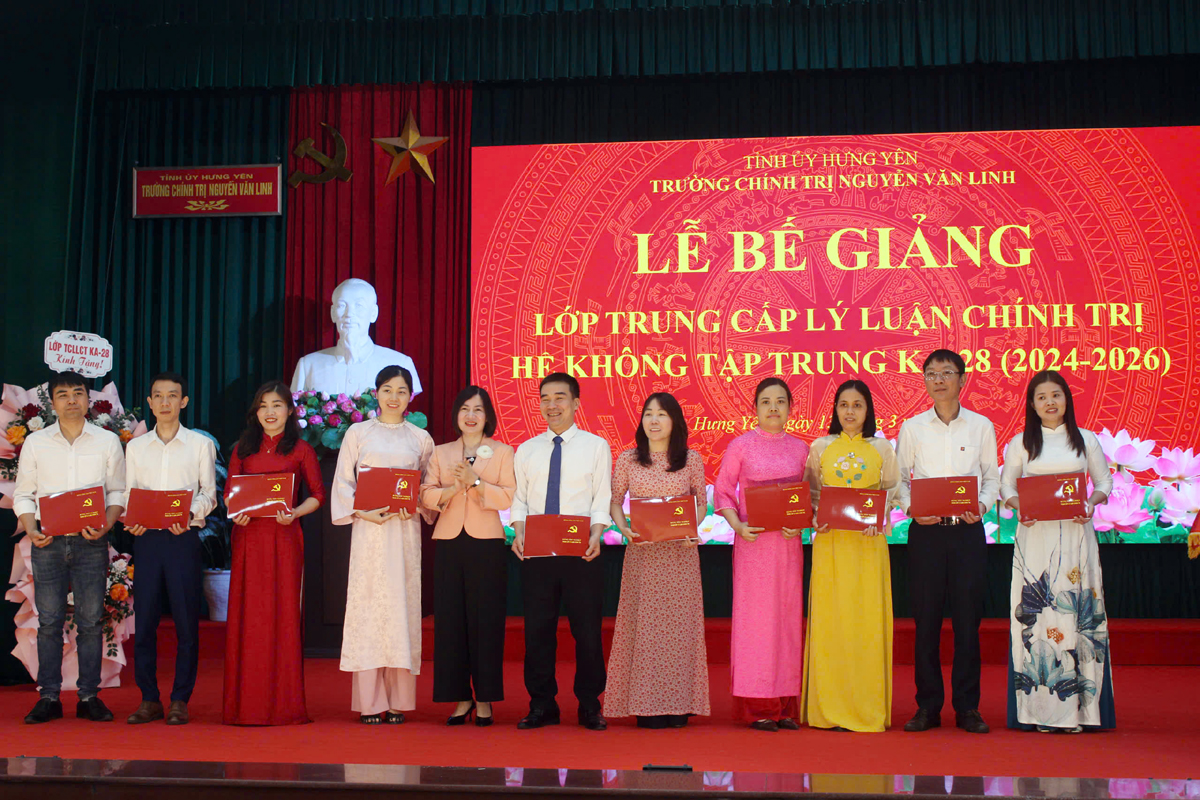 Dự Lễ Bế giảng có đồng chí Ninh Thị Hồng Hạnh - Phó Hiệu trưởng Trường Chính trị Nguyễn Văn Linh; đồng chí Đoàn Thị Thanh Minh - Phó Bí thư Thường trực Đảng ủy xã Lương Bằng, Giám đốc Trung tâm Chính trị xã, đồng Chủ nhiệm lớp; lãnh đạo các phòng, khoa, cùng toàn thể học viên lớp Trung cấp Lý luận chính trị hệ không tập trung khóa KA-28.